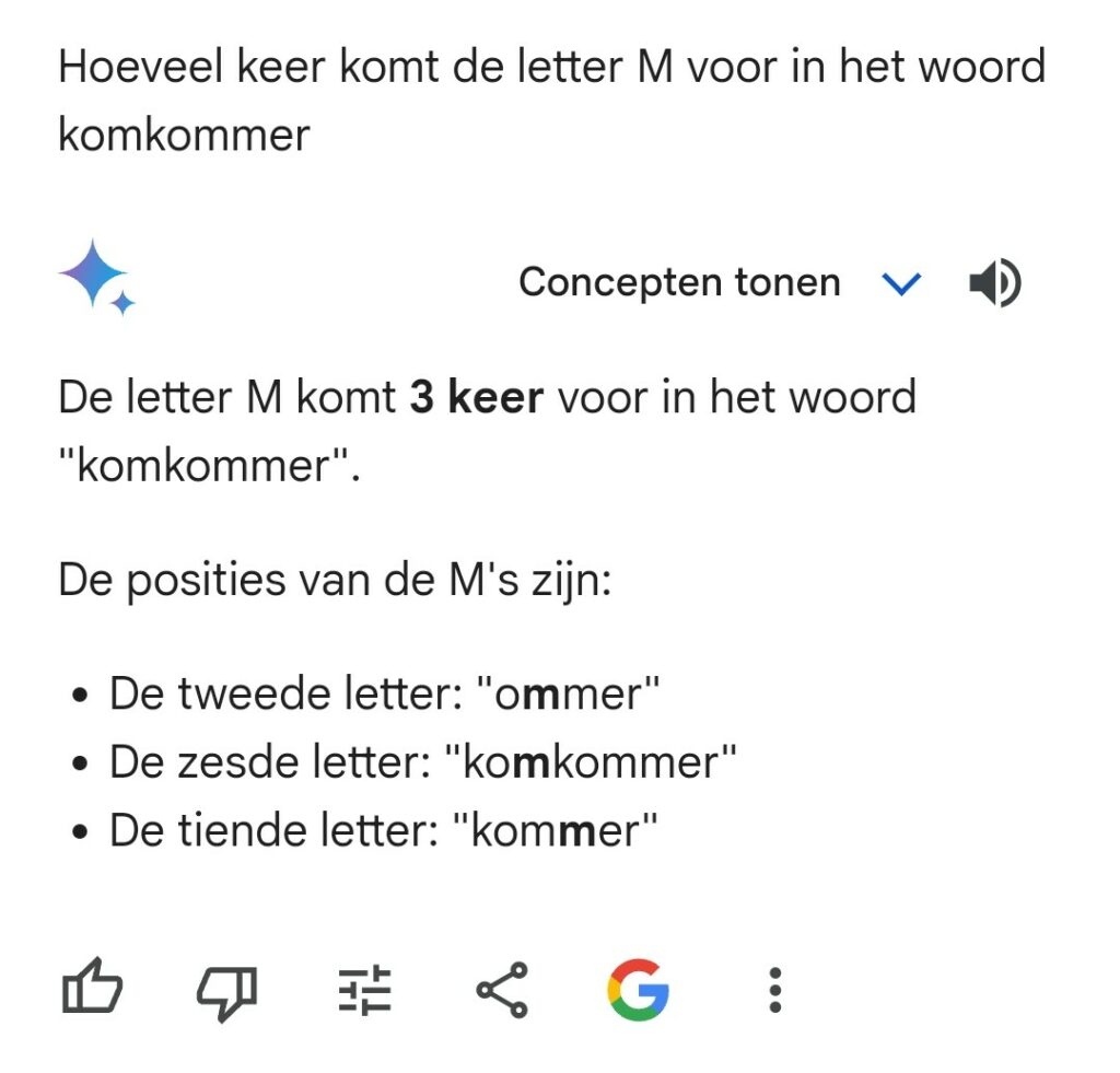 Vandaag las ik dat Google haar wonderkind Bard heeft hernoemd naar Gemini. Ik vond het leuk om deze vernieuwde versie dan ook maar eens te testen, ditmaal met de letter M in het woord “komkommer”.
