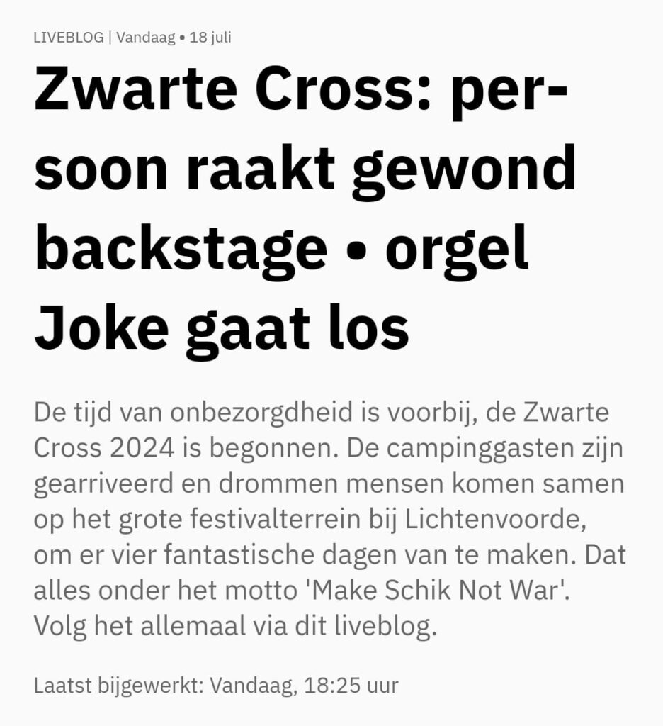 Zwarte Cross: persoon raakt gewond backstage • orgel Joke gaat los